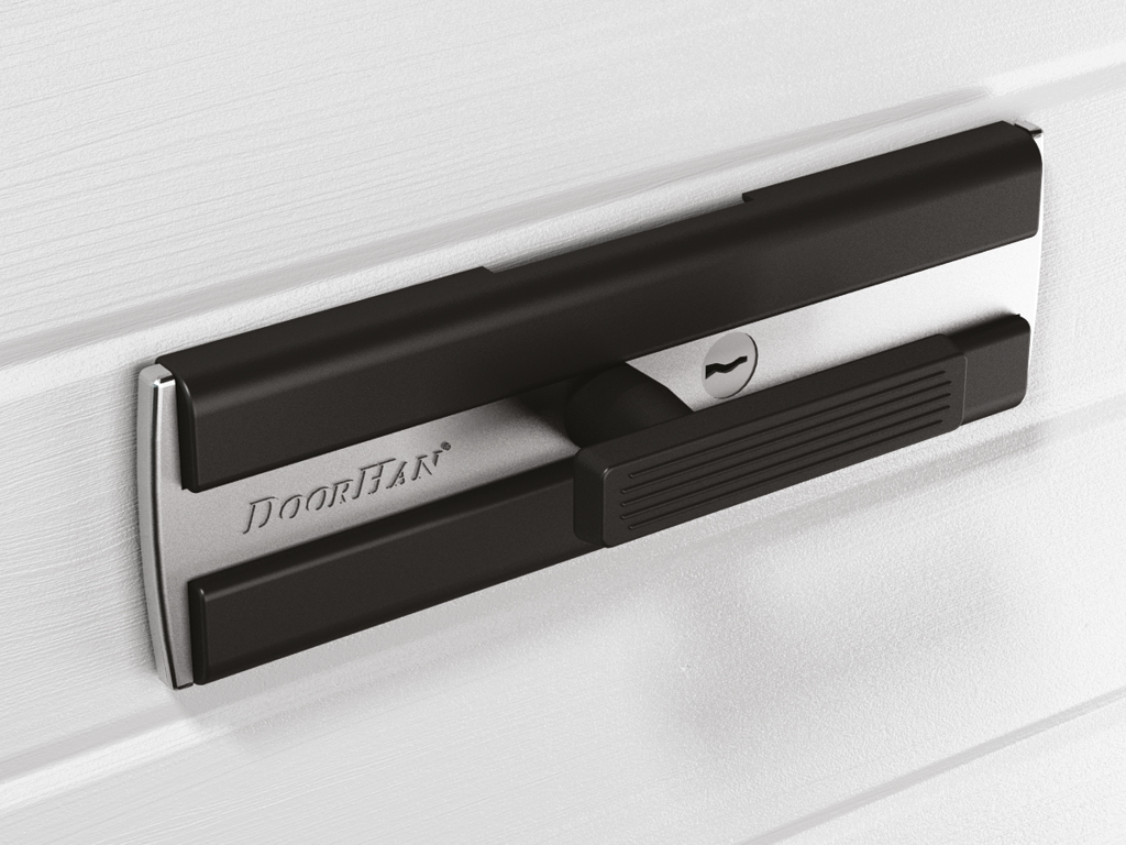 Механический замок позволяет блокировать полотно ворот в закрытом положении — как изнутри помещения, так и со стороны улицы.